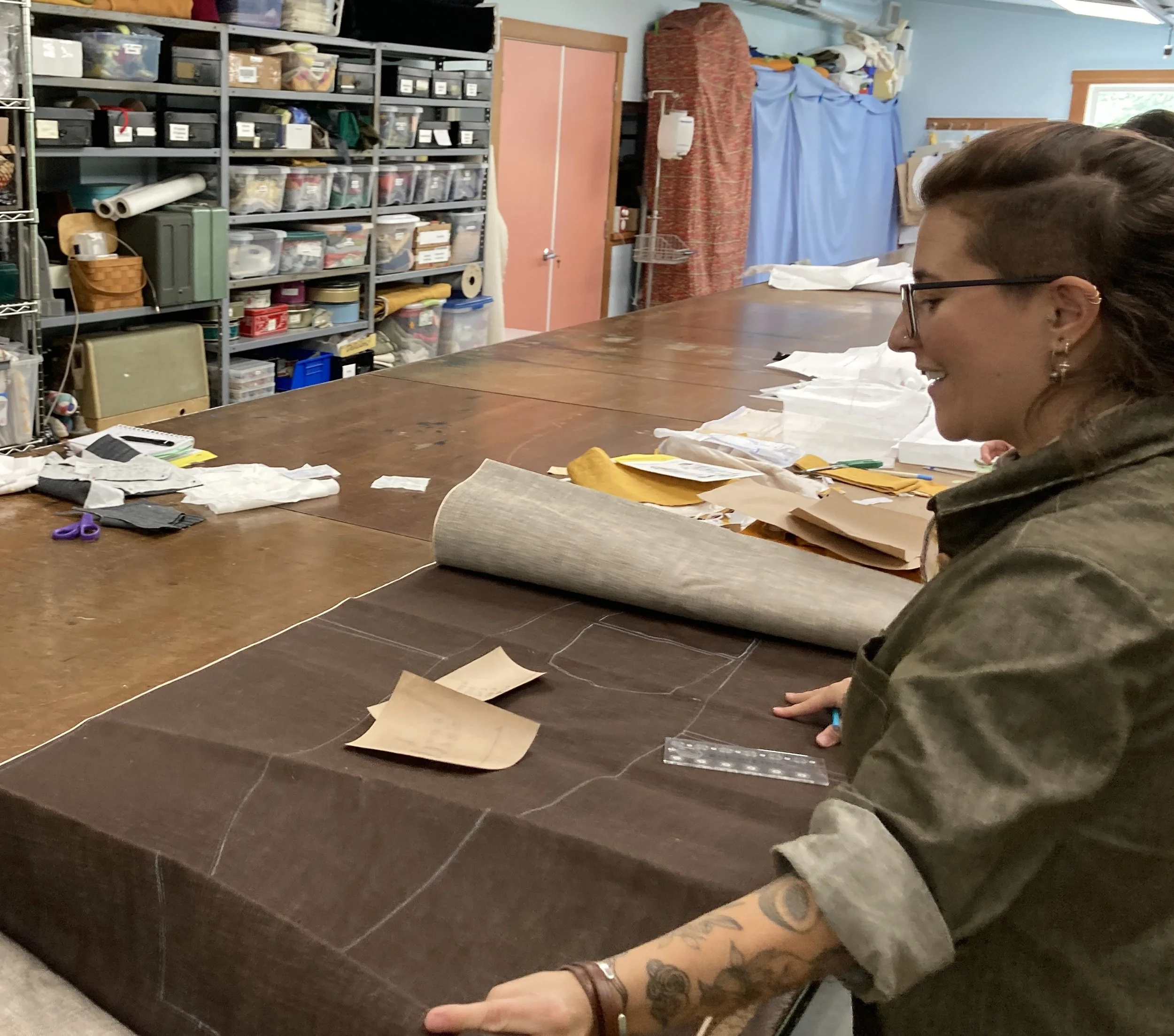 Caroline Cook is returning to lead students through the jeans fitting and construction process. She is a costume designer and technologist in the drama department at the University of Virginia, from which she holds a MFA in Costume Design and Technology.